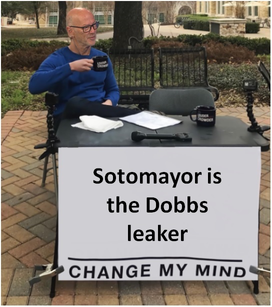 I suspected Sotomayor at the outset and wrote a piece about my suspicions. I now think more than ever it’s Sotomayor, I think Alito thinks so, and I think history will say so.