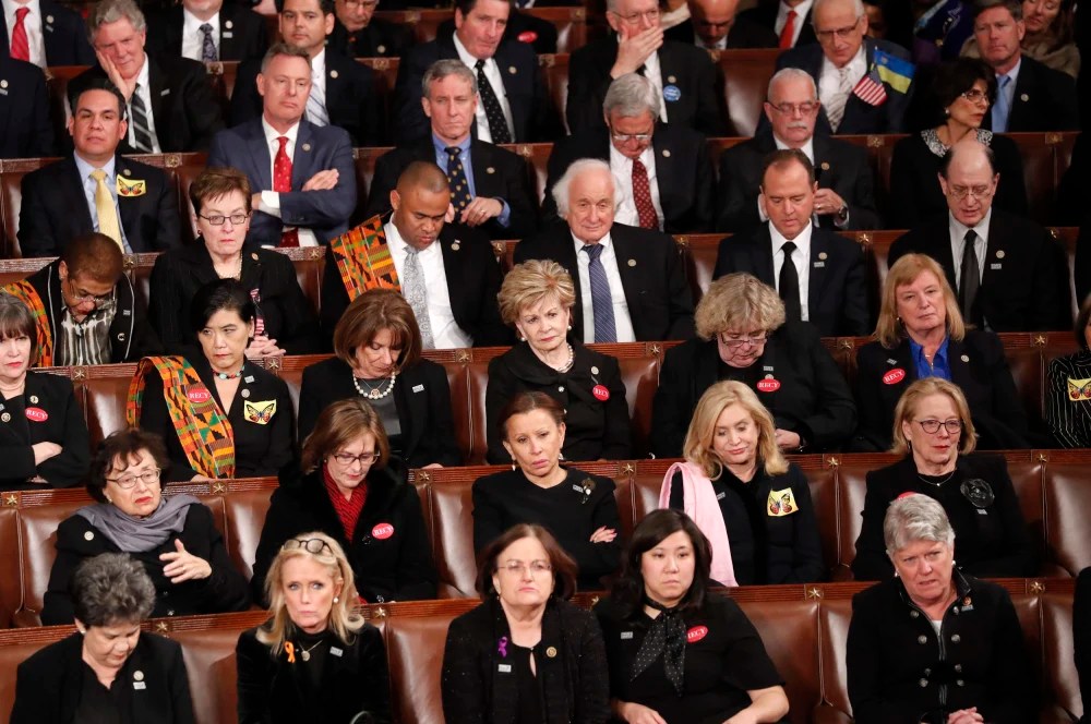 The basis for this misogyny, apparently, was that Trump’s quip that he would “have to” invite the women to the SOTU implied that he didn’t really want the women to come, and he was inviting them only to avoid being impeached.